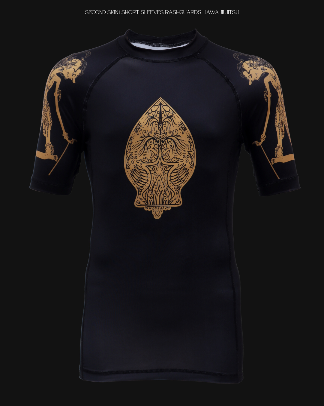 On the sleeves, the Wayang characters are reminders that combat is an intellectual art. Javanese martial philosophy teaches ketenangan lebih tajam daripada amarah — calmness cuts deeper than rage. The strongest fighter dictates time & tempo, not with force — but with awareness.
